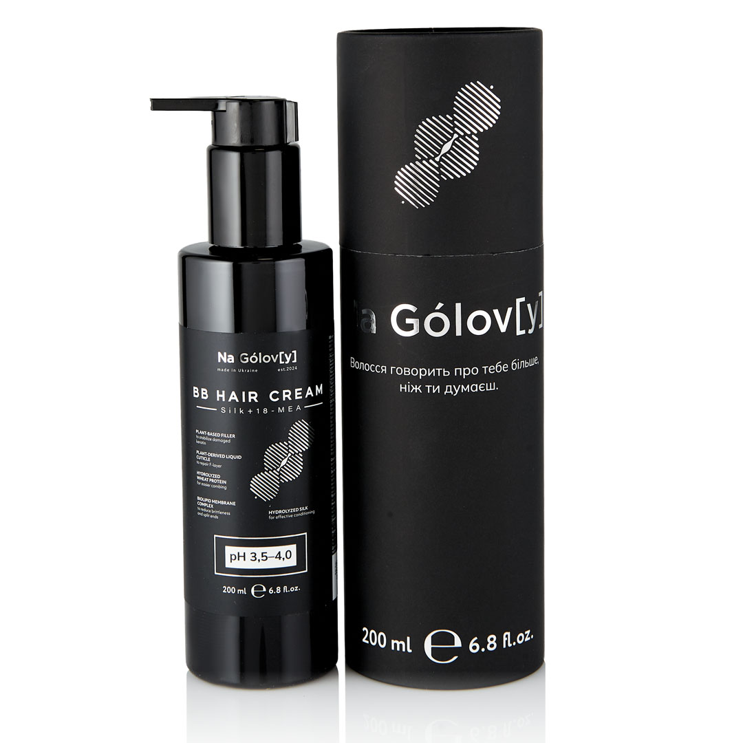BB-крем для волосся Шовк+18-МЕА ТМ «Na Gólov[y]» — це незмивний засіб для ефективного кондиціонування, розгладження, надання волоссю природного сяйва та привабливого вигляду. Рослинний філер для стабілізації пошкодженого кератину. Біоліпідний мембранний комплекс для зменшення ламкості та посіченості кінчиків. Рідка кутикула рослинного походження для відновлення F-шару. Гідролізовані протеїни шовку для ефективного кондиціонування. Гідролізовані протеїни пшениці для полегшення розчісування.