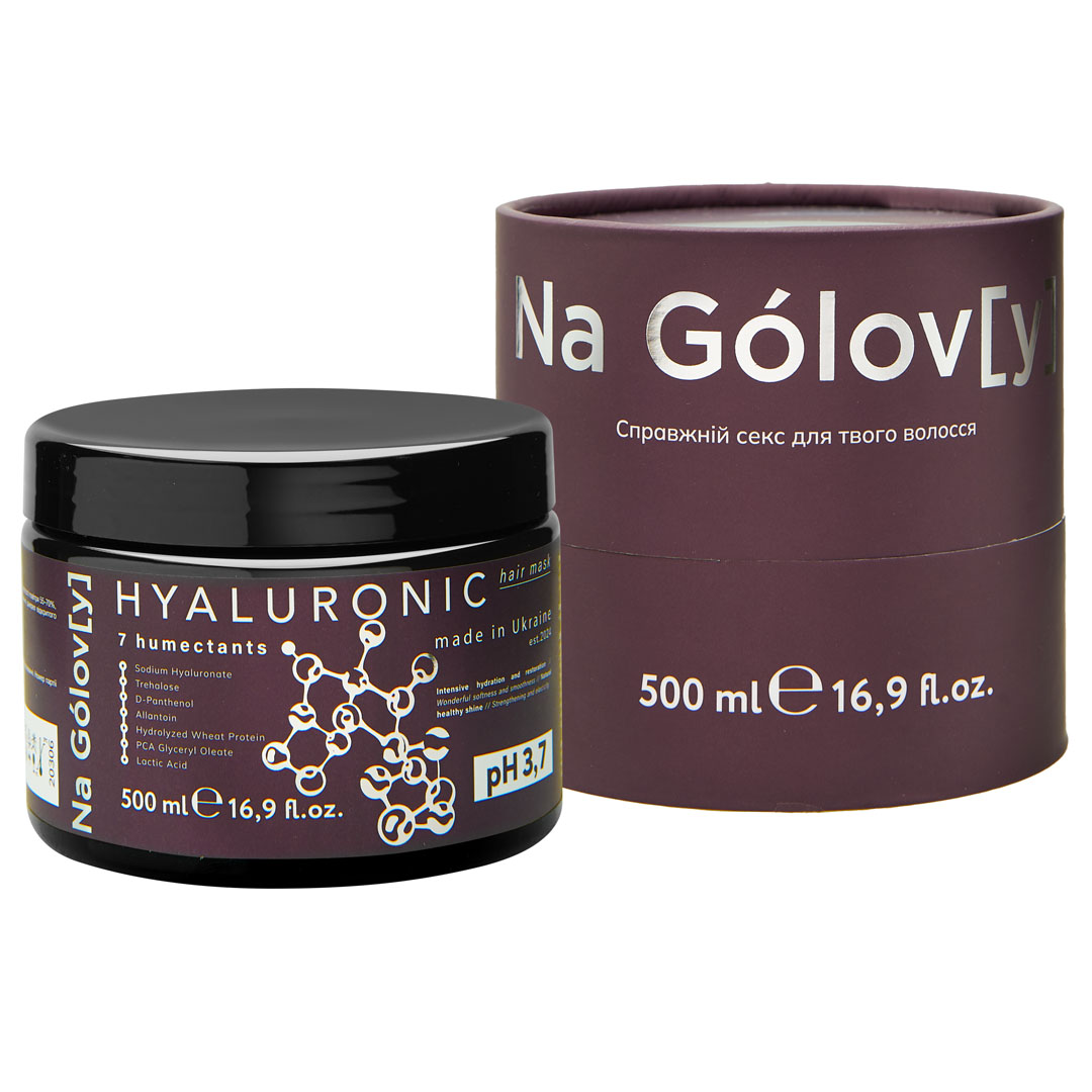 Гіалуронова маска для волосся 7 зволожувачів ТМ «Na Gólov[y]» містить синергетичну комбінацію з 7 зволожувальних компонентів і призначена для інтенсивного зволоження і відновлення пошкодженого, сухого волосся. Вона ефективно кондиціонує, пом’якшує і розгладжує волосся, надає йому блиск і гладкість, покращує еластичність і запобігає появі посічених кінчиків.