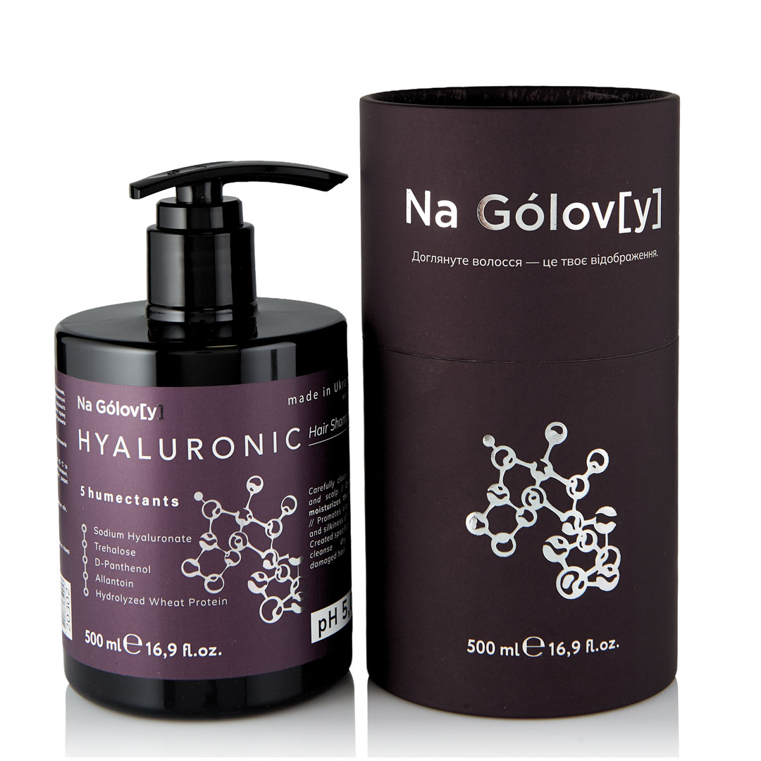 Гіалуроновий шампунь для волосся 5 зволожувачів ТМ «Na Gólov[y]» містить синергетичну комбінацію з п’яти зволожувальних компонентів і ніжно очищує волосся, насичуючи вологою навіть найбільш сухі пасма. Сприяє зволоженню, еластичності, блиску й шовковистості волосся. Створений спеціально для м’якого очищення сухого та пошкодженого волосся.