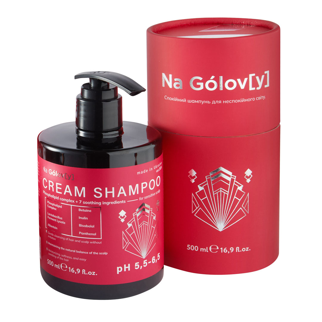 Крем-шампунь для чутливої шкіри голови ТМ «Na Gólov[y]» завдяки унікальному складу не лише м’яко очищує, а й заспокоює, зволожує та сприяє підтриманню природного балансу шкіри голови. Ретельно підібраний комплекс активних компонентів сприяє збереженню здоров’я шкіри голови та волосся, зміцнює захисний бар’єр, зменшує чутливість і створює відчуття комфорту після кожного використання. Поєднання комплексу фосфоліпідів та 7 заспокійливих компонентів — це м’який догляд, що починається зі шкіри голови та завершується блиском вашого волосся.