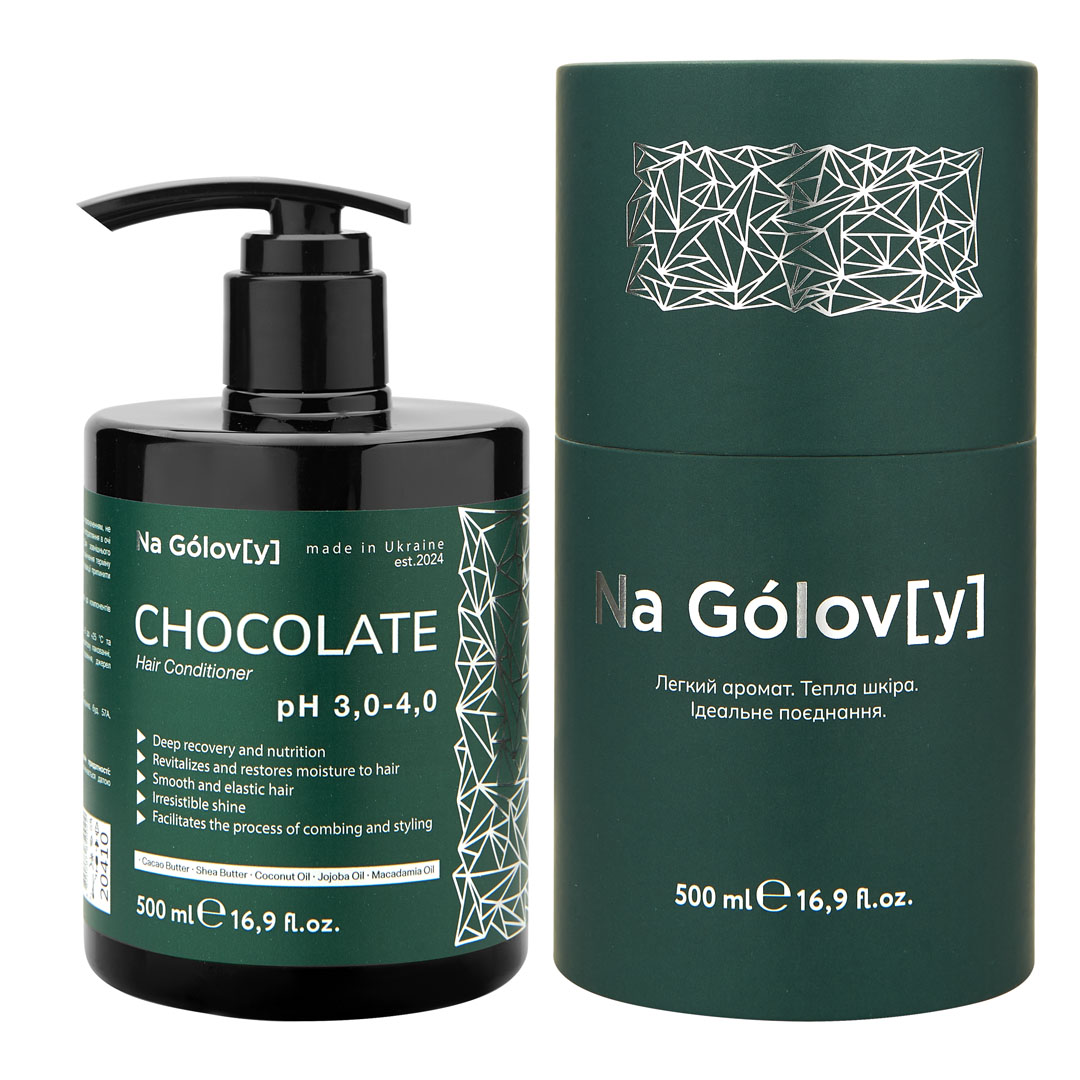 Шоколадний кондиціонер для волосся 5 олій ТМ «Na Gólov[y]» містить комбінацію з 5 живильних олій і призначений для зволоження, відновлення і реконструкції пошкодженого, сухого волосся. Він живить, пом’якшує і розгладжує волосся, надає йому блиск і шовковистість, робить більш еластичним і слухняним.